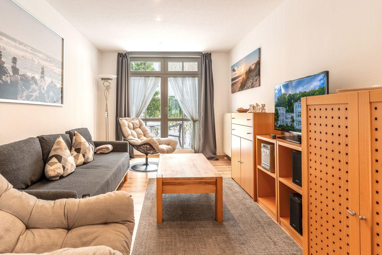 Der geräumige Wohnbereich lädt zum entspannen ein. Das Schlafsofa lässt sich mit wenigen Handgriffen zu einen gemütlichen Schlafplatz für 2 weitere Personen öffnen. Die kleine Terrasse erreichen Sie über den Wohnbereich